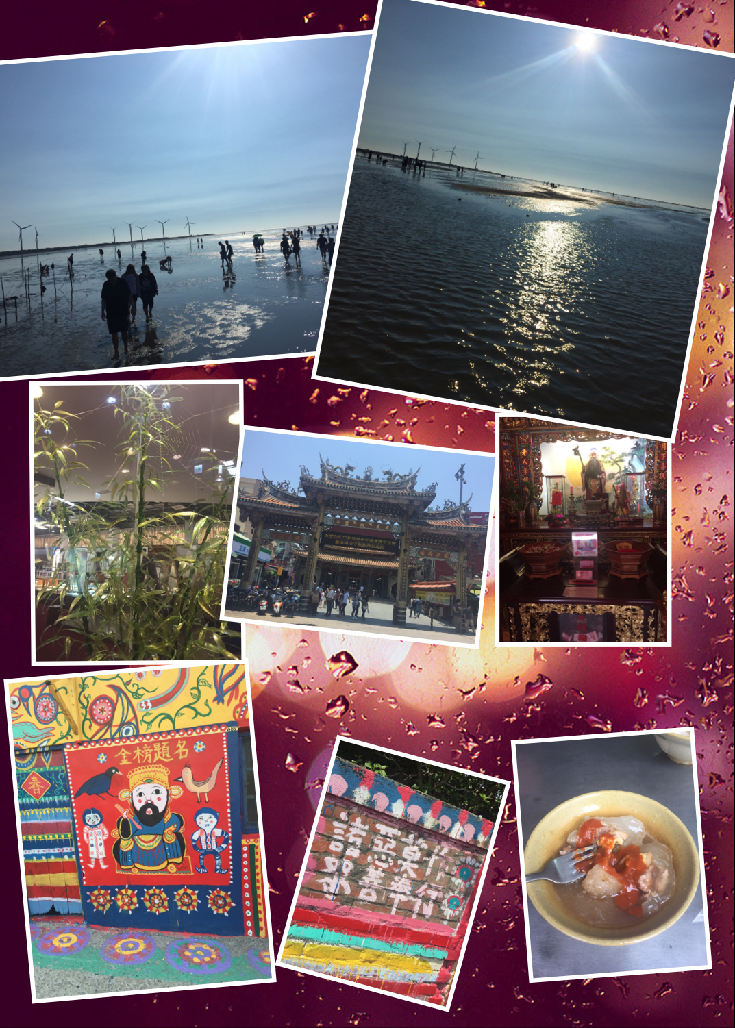 最後一站是高美濕地,是台中著名的觀鳥聖地以及日落觀景地,有著潮溪、草澤、沙地、碎石、泥灘等多樣的棲息環境。值得一提的是小螃蟹特別多,還有一種螃蟹是只有一個鉗子的。我們抵達高美濕地的時候是下午四點左右,太陽日曬相對於正午還是小了很多,海風吹拂可以帶來一絲清涼。沿著濕地的棧道一直向前走,抵達盡頭以後可以脫下鞋子踩水進去,腳底下踩著的泥非常舒服,景色非常美,水面像鏡面一樣映襯著天空的顏色,仿佛到了天際一般。暑假高美濕地日落大概到7點半以後,因此我們來的時候並沒有欣賞到日落的景色。需要注意的是高美濕地交通非常不方便,7點之後就沒有公共交通了,並且距離市區較遠,因此建議包車或者拼車前往。